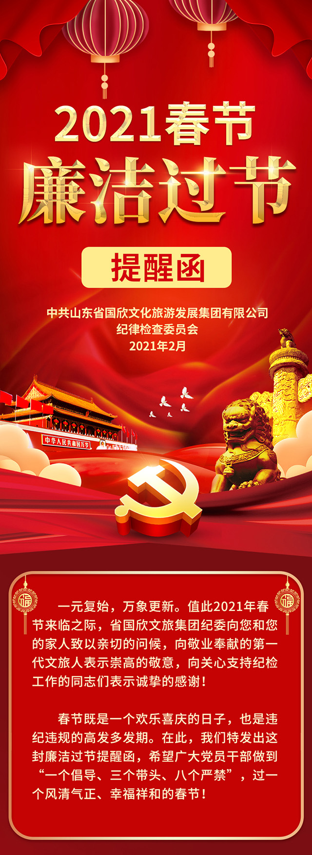 2021春节廉洁过节提醒函
