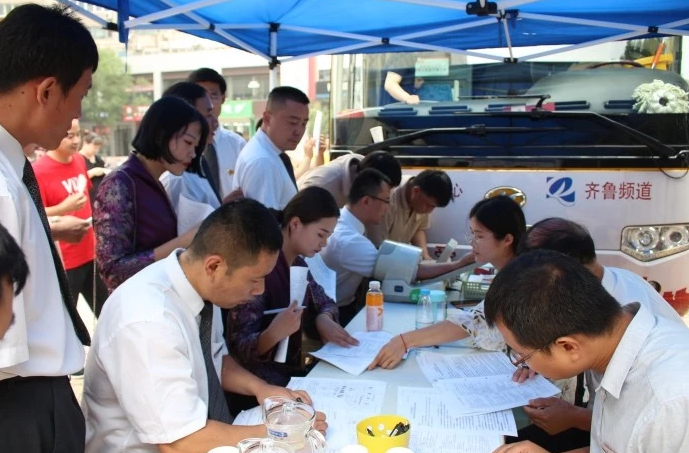 7月11日清晨,在银座商城店正门广场,来自银座集团驻济各党支部的各级干部职工早早地在采血现场排起了“爱心传递”的长队。