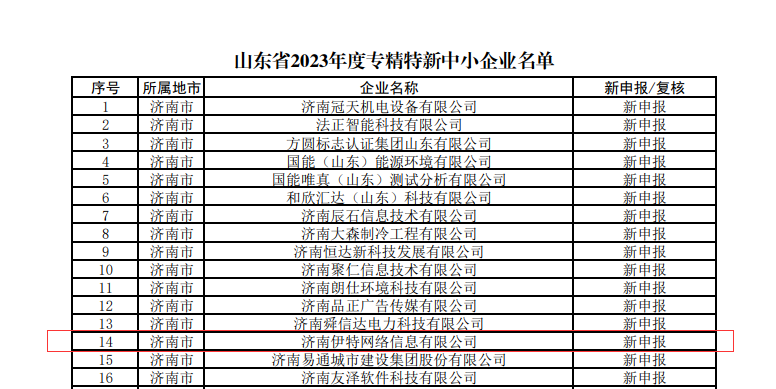 5月10日,山东省工业和信息化厅公布山东省2023年度专精特新中小企业名单,经过层层严格遴选,山东文旅传媒集团旗下济南伊特网络信息有限公司(鲁网)成功被认定为山东省专精特新中小企业。
