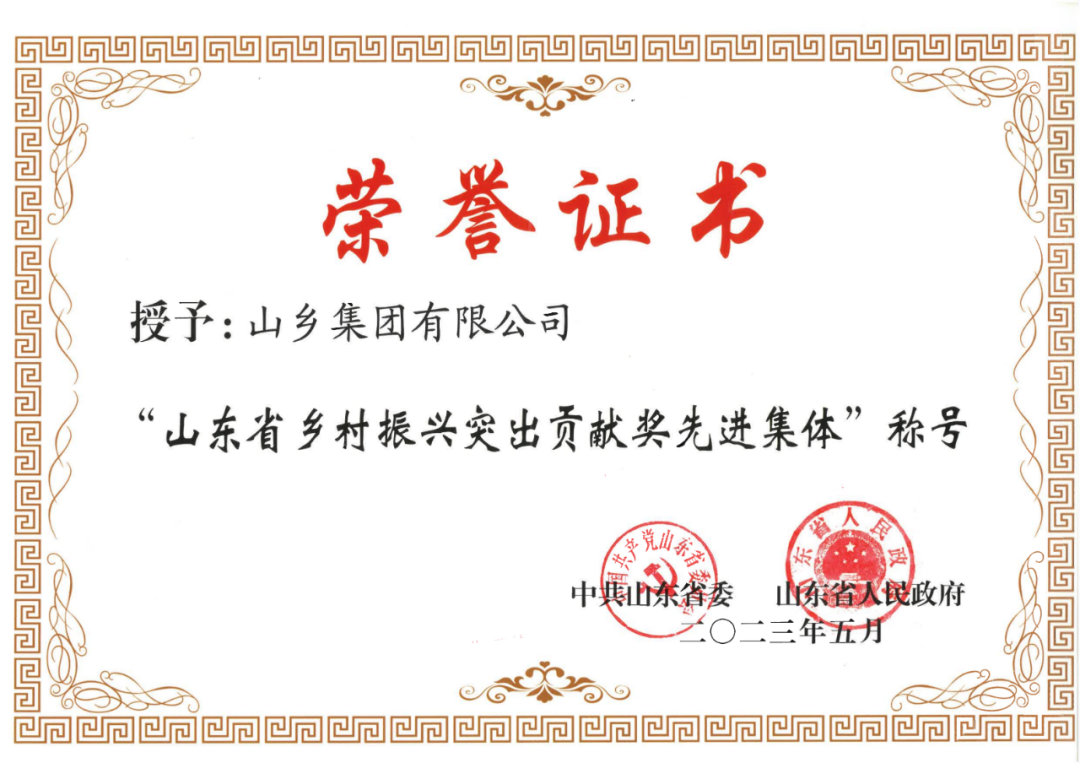 荣获全省乡村振兴突出贡献奖先进集体,既是对公司乡村振兴工作的认可和肯定,更是莫大的鞭策和激励。下一步,山乡集团将坚持以习近平新时代中国特色社会主义思想为指引,深入贯彻习近平总书记关于“三农”工作的重要论述,认真落实省委、省政府决策部署,全面推进乡村振兴,争当行业领军企业,为推动乡村振兴齐鲁样板取得更为明显的实质性进展、农业农村现代化迈出新步伐作出更大贡献。