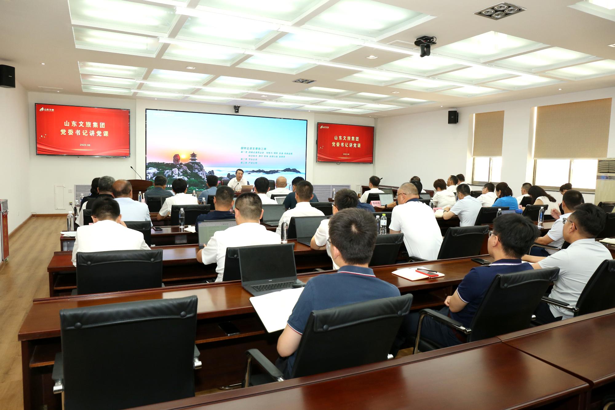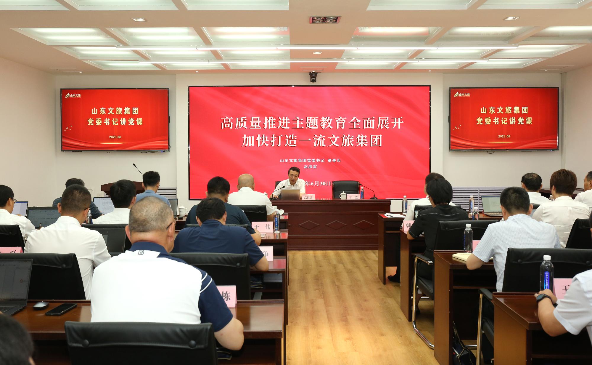 为扎实推进学习贯彻习近平新时代中国特色社会主义思想主题教育,6月30日,集团党委书记、董事长高洪雷以“高质量推进主题教育全面展开 加快打造一流文旅集团”为主题,在集团党委主题教育读书班上作专题党课,集团党委副书记、总经理丁艺主持。