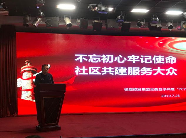 为贯彻落实开展不忘初心,牢记使命,加强棋盘街社区党委与山东银座旅游集团党委组织互助共建,棋盘街社区党委联合山东银座旅游集团党委于2019年7月25日下午,开展互学共建“六个一”交流活动,并签订“共建协议书”。