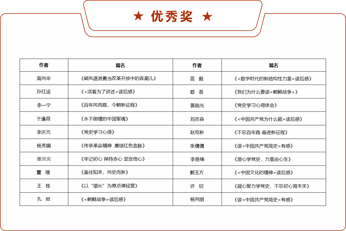 “牢记初心 保持赤心 坚定信心”党史读书竞赛一等奖、二等奖