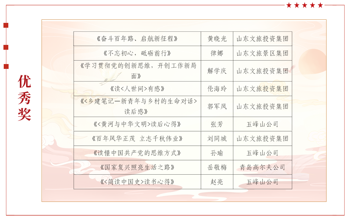 2023年是学习贯彻党的二十大精神的开局之年,是实施“十四五”规划承上启下之年,为深入学习宣传贯彻党的二十大精神,扎实开展学习贯彻习近平新时代中国特色社会主义思想主题教育,在集团形成爱读书、读好书、善读书的浓厚氛围,坚持“规模效益年”年度工作方针,不断加强企业文化和党建工作,助推集团高质量发展,今年在全集团范围内开展“学思想 强党性 重实践 建新功”主题教育读书竞赛活动。