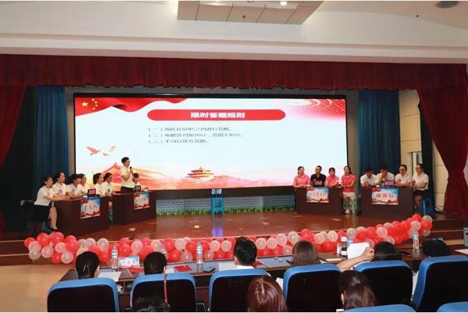 比赛中观众也不甘示弱,积极踊跃地举手答题,条理清晰的回答得到了所有人的肯定。现场的啦啦队也非常给力,喊出加油口号将赛场氛围推向顶点,整个比赛过程紧张有序、竞争激烈。台上台下的默契配合,向大家展示了新时代党员教师们的信心和风采。