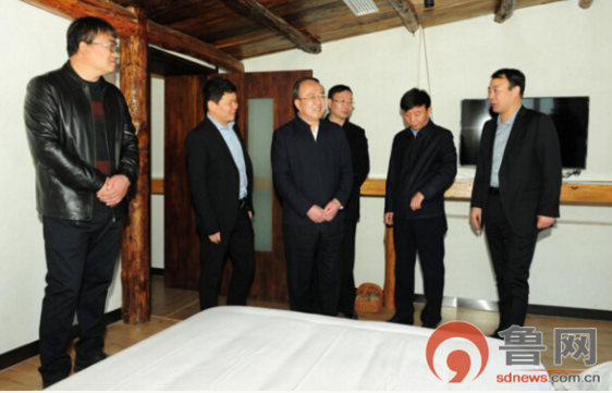 九女峰片区内的八楼村和东西门村相隔不远,均建有泰山文化特色民宿,蜿蜒陡峭的山路将两个风景优美的村庄连接起来。在八楼村,于国安察看了特色民宿,并关切地询问村里的发展情况,听到“村集体一年收入40多万”的回答,于国安夸赞“真不错”。在东西门村,高洪雷与山东鲁商乡村振兴有限公司(以下简称乡村振兴公司)董事长赵衍峰相继介绍了村居改造和村民安置情况。听说这里不仅会有“最美回迁房”,还会解决村民就业和年轻人的技术学习问题,于国安对鲁商集团“六进村、七变、六能”的乡村振兴模式予以肯定。