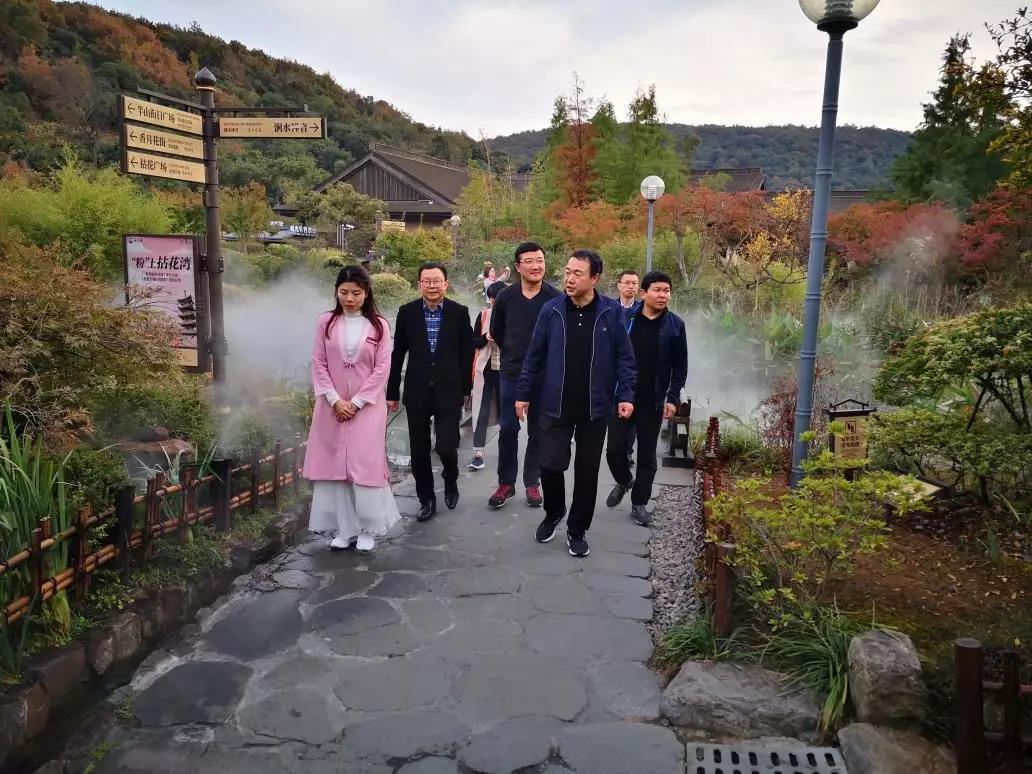 高洪雷一行在无锡拈花湾文化旅游投资发展有限公司总经理陈琪和无锡市赛博文旅公司董事长、鲁商泰山人家总策划徐忠明的陪同下,现场参观了拈花湾小镇,详细了解项目创意策划及运营管理等情况。