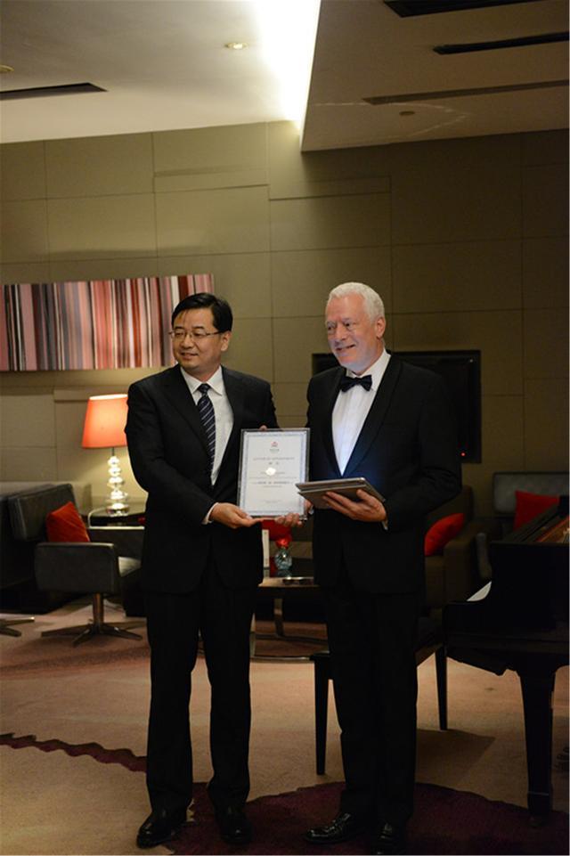 被授予“济南文化旅游交流大使” ,奥利维用中文致谢。他表示非常荣幸,今后将通过音乐架起沟通的桥梁,让更多人认识、了解泉城济南。