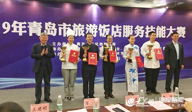 经过为期一天的激烈比拼,2019年青岛市旅游饭店服务技能大赛(行业组):青岛府新大厦的葛文丽以总分92.23分获得中餐宴会摆台项目一等奖;青岛黄海饭店的陆茜茜以总分88.90分获得西餐宴会摆台项目一等奖;青岛府新大厦的高振勇以总分93.17分获得中式铺床项目一等奖;青岛黄海饭店的孙涛以总分92.72分获得厨艺项一等奖;东方之星酒店的赵彩宏以总分93.10分获得面点项目一等奖。
