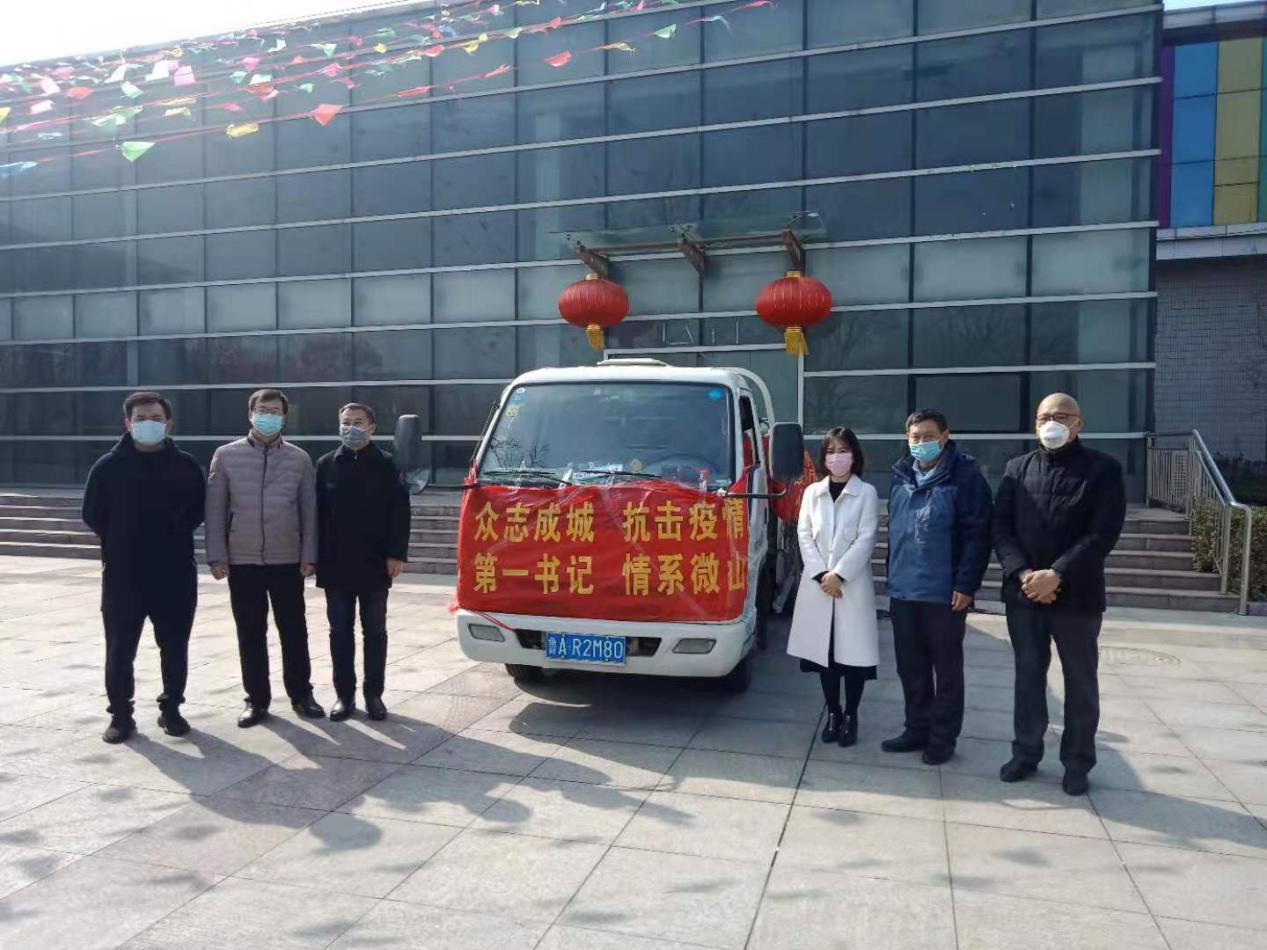 2月13日上午,满满一车总价值三万余元的消毒液经过一路翻山涉水,行程300余公里,从济南火速驰援微山岛镇。