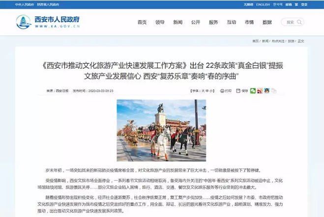 3月3日,西安市出台了《西安市推动文化旅游产业快速发展工作方案》, 22条政策“真金白银”力促旅游业的复苏。