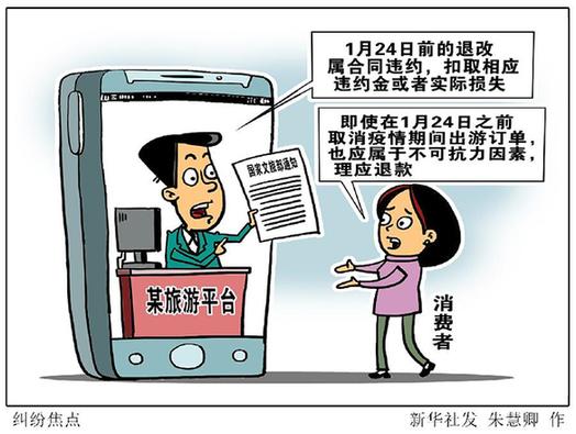 记者调查发现,多数旅游平台以此为节点出台不同退改政策,将1月24日前的退改视为合同违约,扣取相应违约金或者实际损失。而受访消费者认为,即使在1月24日之前取消疫情期间出游订单,也应属于不可抗力因素,理应退款。