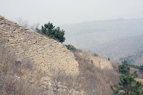 章丘疙瘩岭段单边墙(由西南往东北拍摄)(图片由山东省文物考古研究院张溯提供)