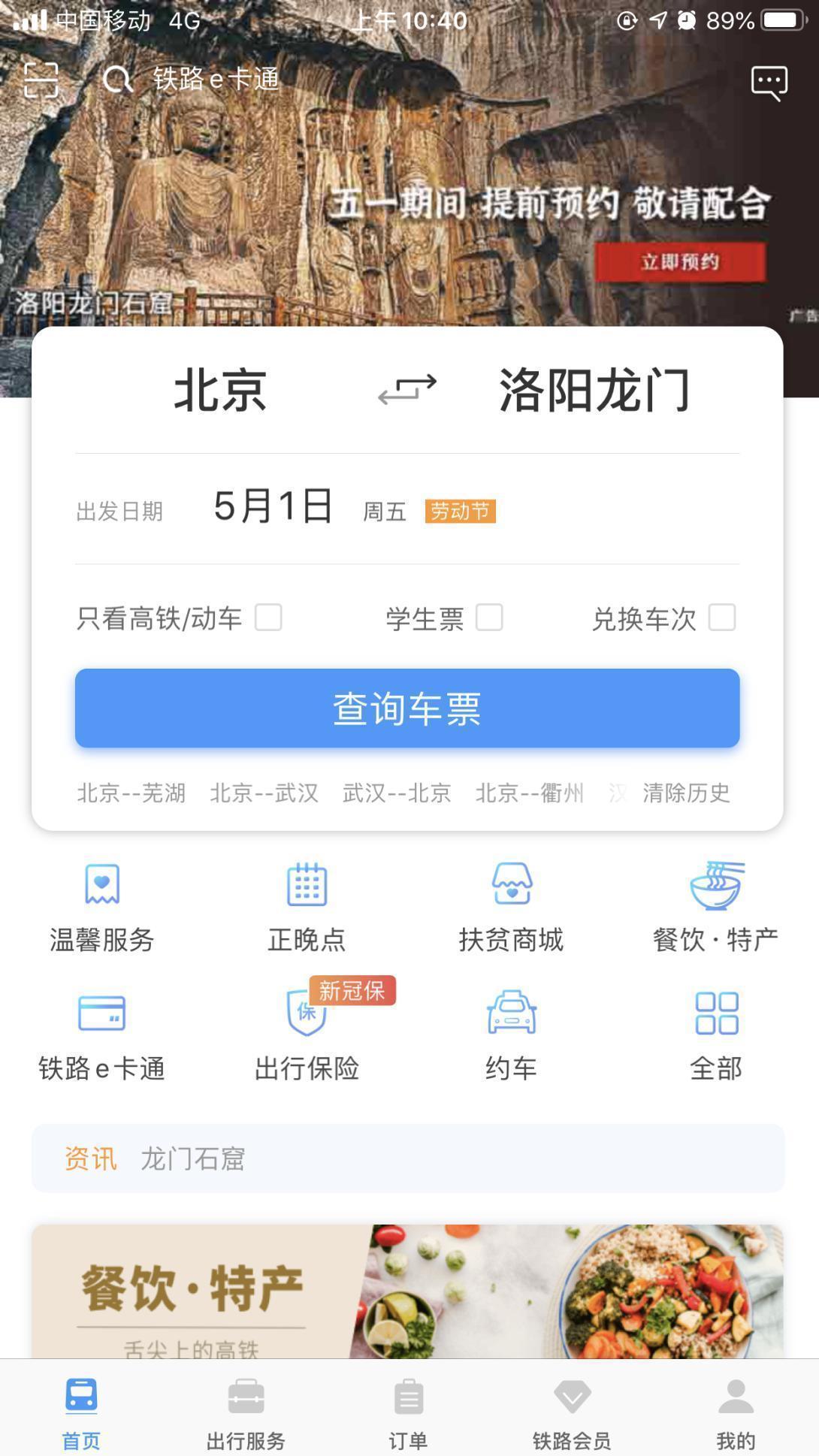 以洛阳龙门石窟景区为例,用户在铁路“12306”订票的同时,即可在订票页顶部看到目的地景区的预约入口,进入预约平台即可线上购票并预约入园日期。
