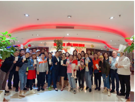 上善坊主管吴永菲得知三家医院工作人员将前往佳悦酒店就餐后,紧急组织服务人员准备互动节目致敬白衣天使。白医生称,“进店之后感受到了酒店工作人员的热情服务,心里暖暖的”。