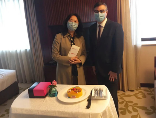 医师刘女士来到索菲特银座大饭店办理免费房入住,细心的前台员工在登记身份证信息时,发现5月12日是刘女士的生日,于是一份惊喜开始酝酿。“叮咚”“Bonjour 您好”,当刘女士打开房门,工作人员唱着生日歌,推着定制生日蛋糕徐徐而进,酒店总经理将鲜花与贺卡送到她的手中,刘女士瞬间热泪盈眶,激动地说:自己已多年没有过生日了,在今天这个特殊的日子里,感受到了浓浓的关爱与祝福,感谢酒店创造的惊喜,也感谢银座旅游集团对医护工作者的关心和用心。