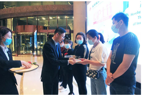 在临沂鲁商铂尔曼大酒店,酒店为即将入住的客人提前准备好房卡及欢迎客信,“平安虎”作为夜床礼物也将带去一份真挚的祝愿。精心组织“最美天使颁发仪式”,由酒店业主代表为医护工作者颁发最美天使荣誉证书,用郑重的仪式表达对他们的感谢。