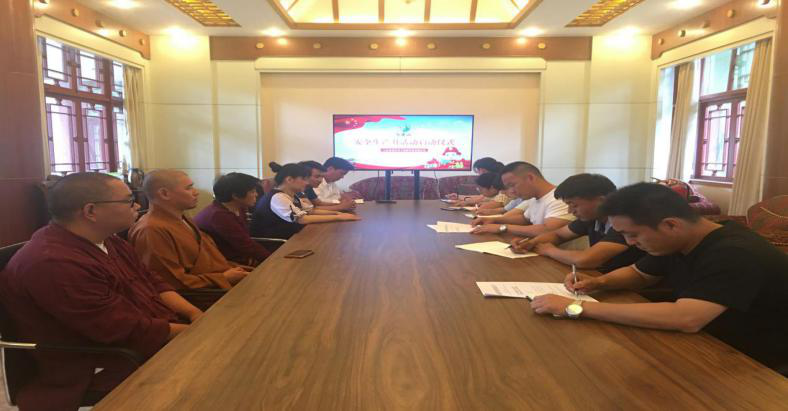活动开展伊始组织召开“安全生产月”动员大会,组织全体员工学习集团《关于进一步做好安全生产工作的通知》文件精神并通过多种形式对游客进行旅游安全知识宣传。组织公司员工、寺院负责人及各商铺负责人,学习消防知识及干粉灭火器使用操作,加强各岗位人员的防火意识,提高火情的科学防控知识及灭火器使用操作流程。