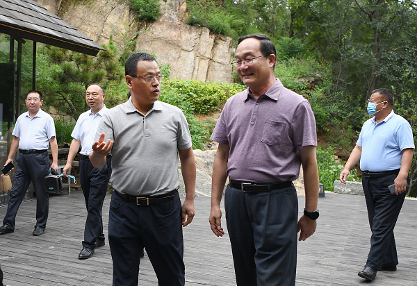 7月3日,省委统战部副部长、省工商联党组书记周云平一行到九女峰项目调研。鲁商集团党委副书记、山东文旅集团总经理刘守亮,泰安市人大常委会副主任、工商联主席王淑玲,泰安市委统战部副部长、工商联党组书记高树顺,岱岳区区委常委、统战部长袁义明等陪同。