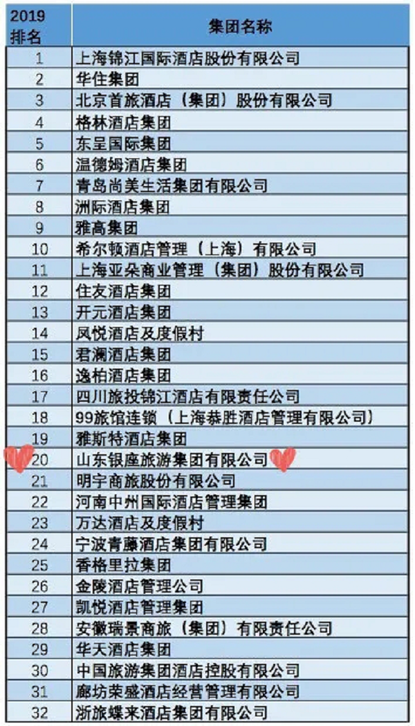 8月22日,第十七届中国饭店集团化发展论坛在青岛举办,围绕旅游饭店严守安全生产底线,走好产业复苏之路,持续推动更大层面、更深程度、更高质量的复工复产展开研讨。现场还公布了2019年中国饭店集团60强名单,银座旅游集团连续多年入围,今年位列第20位!