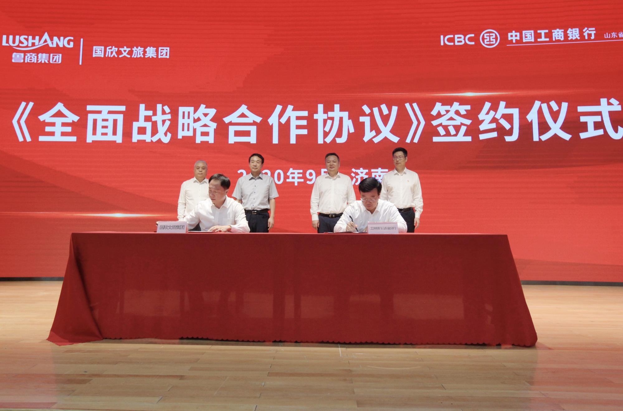 9月9日下午,山东省商业集团有限公司(简称“鲁商集团”)、山东省国欣文化旅游发展集团有限公司(简称“省国欣文旅集团”)分别与工商银行山东省分行签署全面战略合作协议。鲁商集团党委书记、董事长兼省国欣文旅集团党委书记、董事长高洪雷,工商银行山东省分行党委书记、行长赵桂德出席签约仪式并致辞。