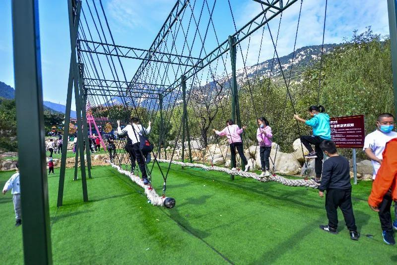 沂蒙山货花车-丰收大巡游营造出热闹喜庆的节日氛围,展现出沂蒙山蓬勃的时代气象和光明的振兴图景。10月1日,“唱起小调庆丰收-百姓大戏台”开演,沂蒙山小调等沂蒙民歌演唱、舞狮、腰鼓、秧歌、快板等精彩的民俗巡游演出吸引了众多游客驻足观看。国庆期间,继蹦极项目正式开放后,天蒙千米高空滑翔伞项目正式对外开放,吸引了众多游客前来体验飞行的乐趣,飞瞰祖国壮丽河山。天蒙山的超级网红亲子游乐园也正式开园,多人秋千、网红跷跷板、枪林弹雨射击场等20余个游乐项目,进一步丰富完善了天蒙的旅游产品体系。