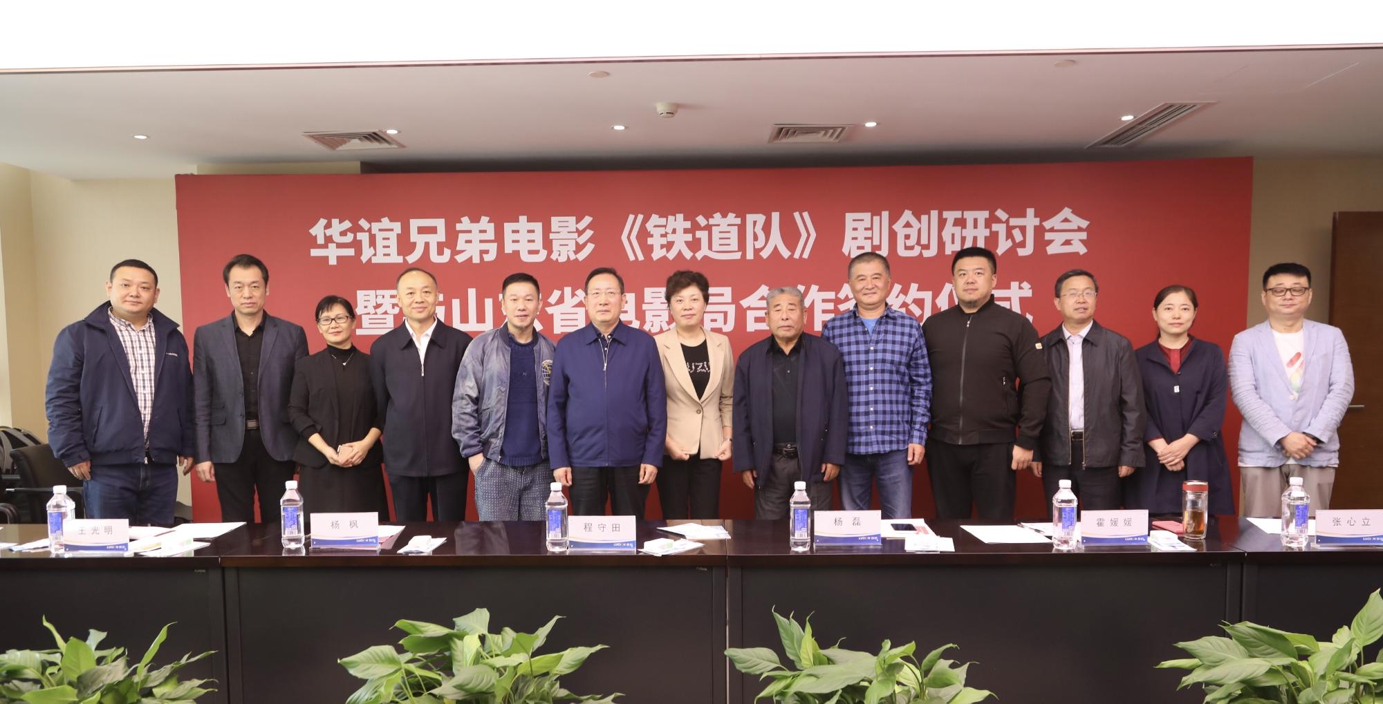 10月12日,华谊兄弟重点影片《铁道队》剧创研讨会暨与山东省电影局合作签约仪式在鲁信文化举行。省委宣传部副部长、省电影局局长程守田,枣庄市委常委、宣传部部长霍媛媛,华谊兄弟电影有限公司副总经理杨磊,影片编剧、导演杨枫,铁道队英烈家属代表及鲁信文化主要负责人参加活动。
