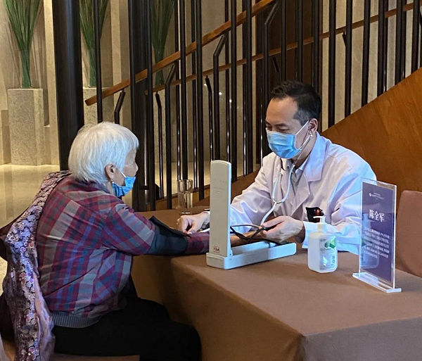 银座旅游集团旗下酒店在大堂设置义诊台,为老年人提供健康咨询、科普养生小常识等,受到大家的欢迎。