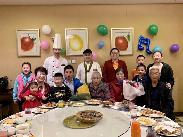 老人们享受着天伦之乐,脸上洋溢着幸福的笑容,寄语酒店生意蒸蒸日上、越来越好。“真心感谢酒店给予的关怀,心里特别暖,我们一定更加努力工作,为酒店做出更多贡献。”赵曰南和廖鹏激动地说。