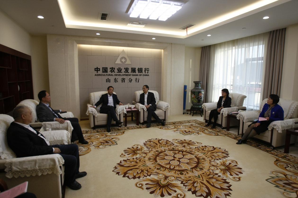 11月2日下午,山东省商业集团党委书记、董事长兼省国欣文化旅游发展集团(简称“国欣文旅”)党委书记、董事长高洪雷带队到中国农业发展银行山东省分行(简称“农发行山东省分行”)走访。农发行山东省分行党委书记、行长江卫国会见高洪雷一行,并就相关合作内容进行交流。农发行山东省分行副行长张艳娟、时祝华,国欣文旅党委副书记、总经理丁艺,外部董事、财务总监高振斌参加座谈交流。