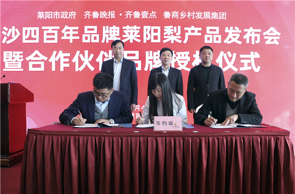 三方按照“政府+合作联社+农业龙头企业+专业品牌销售运营方”联动体系打造莱阳梨品牌思路,签署合作协议,共同深挖莱阳梨的营销卖点、整合全产业链资源,助力实现莱阳梨向品牌化方向转型升级。