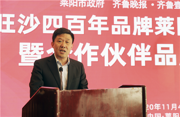 11月4日,山东省国欣文化旅游发展集团旗下鲁商乡村发展集团(简称“乡发展”)、齐鲁晚报·齐鲁壹点与莱阳市照旺庄镇政府在莱阳举行“旺沙四百年”莱阳梨产品发布会暨合作伙伴品牌授权仪式。大众报业集团社委委员、齐鲁报系党总支书记、齐鲁晚报总经理张天卫,乡发展外部董事、财务总监王苏洲,莱阳市照旺庄镇党委书记李志军等出席活动。