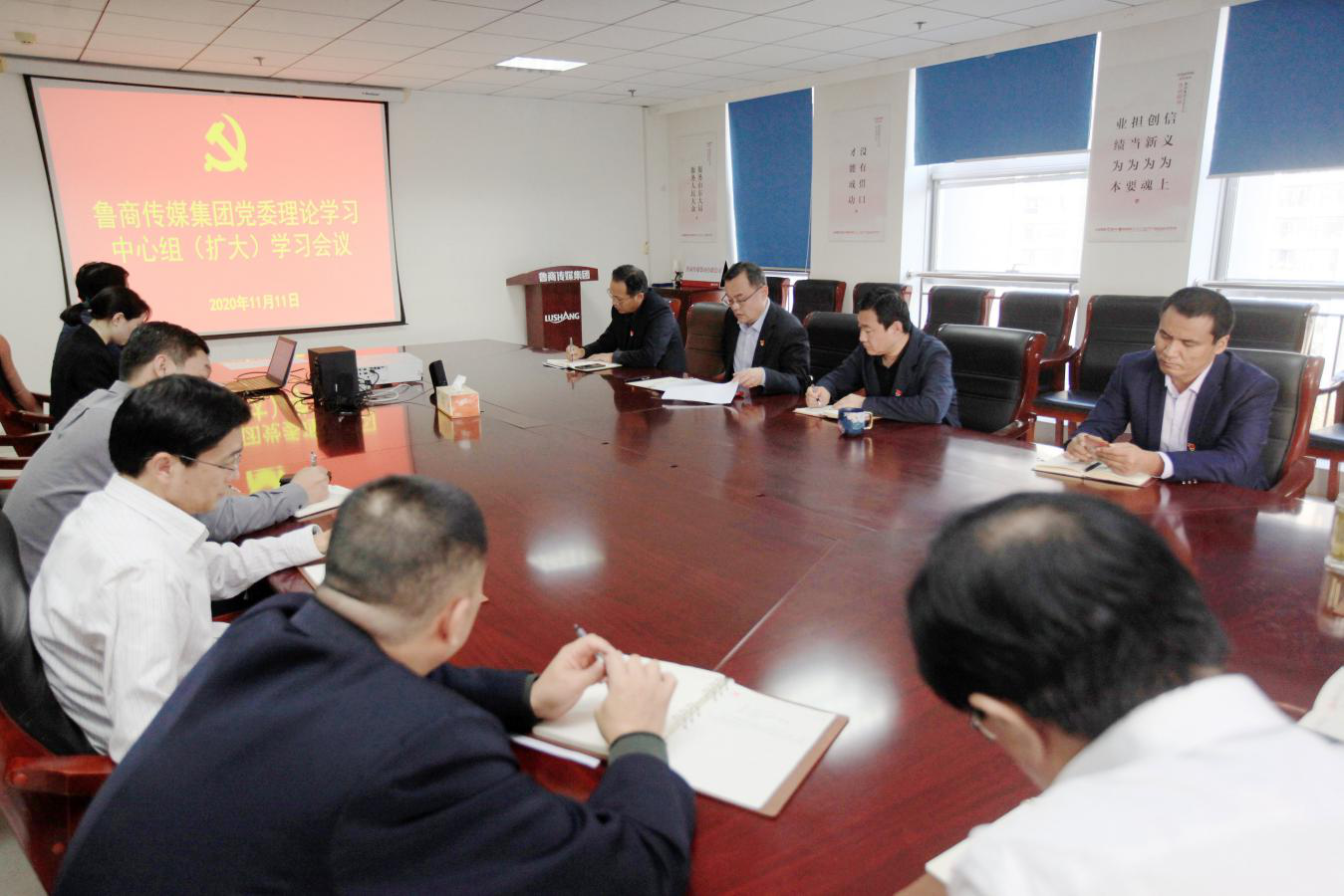 鲁商传媒党委理论学习中心组成员参加学习会,中层副职以上人员列席会议。
