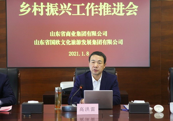 1月8日上午,山东省商业集团有限公司(简称鲁商集团)、山东省国欣文化旅游发展集团有限公司(简称国欣文旅)联合召开乡村振兴工作推进会。会议学习贯彻了十九届五中全会和中央农村工作会议精神,总结分析2018年下半年以来参与乡村振兴工作的经验教训,安排部署当前和今后一个时期的乡村振兴工作。鲁商集团党委书记、董事长兼国欣文旅党委书记、董事长高洪雷出席会议并讲话。国欣文旅党委副书记、总经理丁艺传达了习近平总书记关于乡村振兴的重要讲话和指示批示精神。鲁商集团首席战略官赵衍峰主持会议。