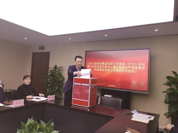2月4日上午,山东文旅投资集团有限公司(简称“文旅投资”)召开党委(扩大)会议暨2020年度党支部书记履行全面从严治党责任和抓基层党建工作述职评议会议。文旅投资党委书记、董事长王化龙主持会议并讲话。国欣文旅团委书记、政工人力资源部副部长杨立华到会指导。