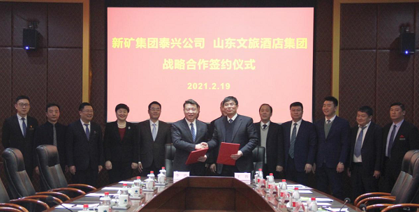 19日上午,山东文旅酒店集团与新矿集团泰兴公司战略合作协议签约仪式在泰安举行。李浩与新矿集团泰兴公司董事长、华源矿业党委书记、董事长王伟代表双方签署战略合作协议。