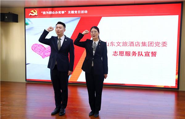 山东文旅酒店集团志愿服务队代表现场宣誓,随后分组到棋盘街社区协助开展安全检查、环境清洁等服务工作,用实际行动践行志愿者精神。