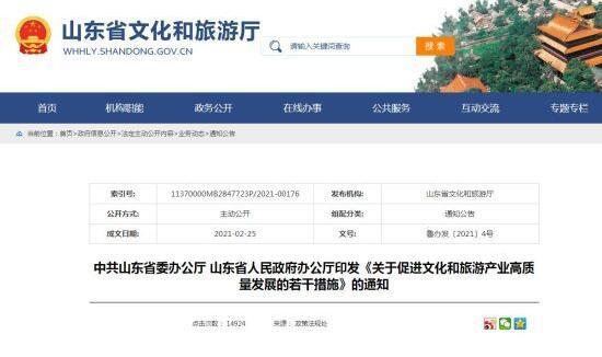 中共山东省委办公厅、山东省人民政府办公厅近日印发《关于促进文化和旅游产业高质量发展的若干措施》的通知,提出实施文化和旅游消费促进行动、推行国有景区“三权分置”改革、推动乡村旅游提质升级等12条举措,推动文化和旅游产业融合发展、高质量发展,助推全省新旧动能转换,服务构建新发展格局。