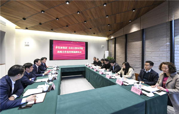 张建峰表示,实施乡村振兴战略,是党的十九大作出的重大决策部署;打造乡村振兴齐鲁样板,是习近平总书记对山东的殷切期望。乡发展集团深入践行“667”乡村振兴发展模式,积极投身我省乡村振兴齐鲁样板建设,先后成立了山东省乡村振兴齐鲁样板研究院,打造乡村振兴智力引擎;成立了鲁商乡村振兴产业基金,创新投融资模式;聘任了中国工程院院士、著名能源与环境专家陈勇,合作建立了乡村振兴院士工作站,开展有机固体废物能源化与资源化利用等技术的研究利用,有关科技成果已在九女峰成功转化。山农大资环学院教学资源雄厚,在农业资源管理与利用、资源环境监测与分析、土地资产经营与管理等领域具有较高的理论水平。此次签约,双方将在构建人才共享机制、搭建教研实训+社会实践双基地、打造横向课题教研室以及“产、教、研、培”技术服务平台方面进行合作,共同开创乡村振兴新局面。
