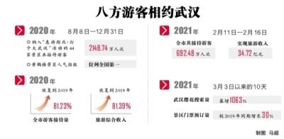 今年3月,随着踏青赏花模式开启,武汉再度因樱花季成热门目的地,春游市场人气火爆。当时间的脚步从2020年走到2021年,留下的一串串印迹在武汉写就了文旅发展新篇章。