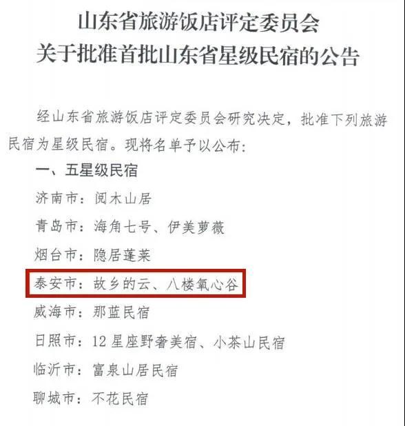 3月22日,山东省旅游饭店委员会发布关于批准首批山东省星级民宿的公告。乡发展集团泰山·九女峰乡村振兴项目故乡的云、八楼氧心谷被评为我省首批五星级民宿。