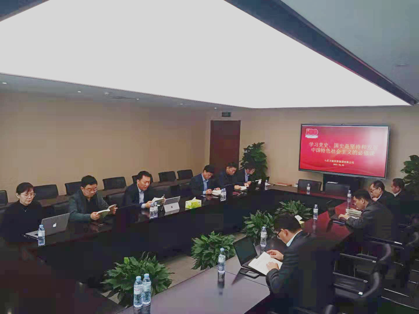 近日,山东文旅投资集团有限公司(以下简称“公司”)召开党委理论中心组(扩大)学习会议,集体学习了习近平总书记《论中国共产党历史》一书的“学习党史、国史是坚持和发展中国特色社会主义的必修课”篇目。公司党委书记、董事长王化龙领学,并带头讲学习心得体会。党委成员和经营班子成员参加集体学习,并围绕党史学习教育进行发言。