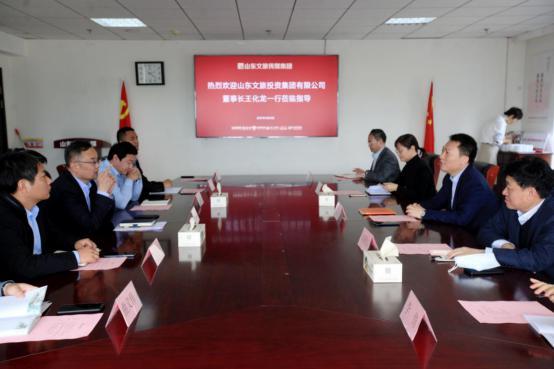 山东文旅传媒集团党委书记、董事长庞道锋热情接待并就产业协同、项目合作、资本运营等内容座谈交流。山东文旅投资集团党委委员、副总经理刘同城,副总经理张雨涛,山东文旅传媒集团党委委员、副总经理王法争参加座谈。