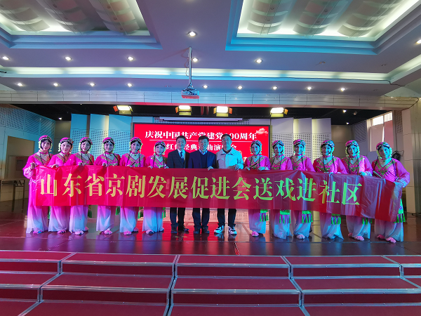 山东省京剧发展促进会是由国欣文旅旗下山东文旅投资集团有限公司(以下简称“山东文旅投资集团”)联合山东艺术学院、山东省京剧院共同发起成立的。山东省京剧发展促进会自成立以来举办了多场“送戏下乡”、慰问扶贫干部、慰问贫困学生、京剧艺术进校园等形式多样的演出活动,在传承国粹艺术、弘扬传统文化、促进京剧发展等方面起到了积极推动作用。为迎接和庆祝建党100周年,山东省京剧发展促进会把京剧艺术带到社区,既是以实际行动向建党100周年献礼,又是积极践行省管社会组织社会责任的生动体现。