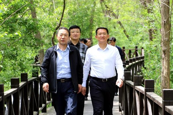 高洪雷现场考察了东营市河口区槐树林温泉旅游区、神州澳亚牧场等项目,并与河口区有关同志就相关合作进行了深入交流。