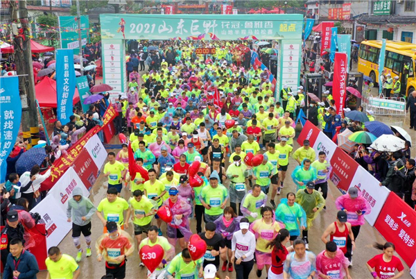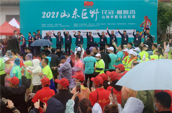 五月金山风景好,运动健身正当时。5月16日上午8点,由中共巨野县委、县政府主办,山东文旅传媒集团、巨野县总工会、文化和旅游局、教育和体育局、卫生健康局、融媒体中心承办,巨野县核桃园镇政府、独山镇政府协办,山东文旅传媒集团速豹体育运营的2021山东巨野山地半程马拉松赛在蒙蒙细雨中激情开跑,山东文旅传媒集团党委书记、董事长庞道锋与巨野县委书记王昌华、县长王东共同为赛事“鸣笛”。