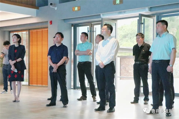 韦峰一行首先来到乡发展集团总部,在山6创意园区参观了乡村振兴示范展厅、农产品展厅、鲁商袈蓝规划设计院、电商直播小镇,之后前往泰山·九女峰乡村振兴项目,实地考察了山东省乡村振兴齐鲁样板研究院、春天里度假酒店、八楼氧心谷、“故乡的云”民宿及九女峰书房,深入了解九女峰乡村振兴项目的发展模式及实践内容,对乡发展集团实践乡村振兴战略、打造九女峰乡村振兴齐鲁样板的做法给予充分肯定。