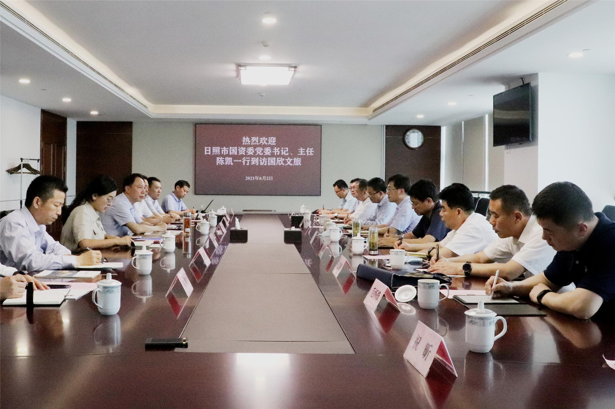 6月2日下午,山东省国欣文化旅游发展集团有限公司(简称“国欣文旅”)党委副书记、总经理丁艺与到访的日照市国资委党委书记、主任陈凯一行座谈。国欣文旅党委委员、副总经理乔卫东参加座谈。