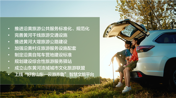 大力推进沿黄旅游公共服务标准化、规范化建设,提升服务效能。完善黄河干线旅游交通设施,推进黄河大堤旅游公路建设,打造高标准、有风格的特色景观道路。加强沿黄村庄旅游服务设施配套,统一设计制作旅游标识。制定沿黄自驾车营地建设标准,结合沿线旅游景区、森林公园、湿地公园和乡村旅游特点,规划建设综合性旅游服务驿站。指导沿黄9市成立山东黄河流域城市文化旅游联盟,推动联盟城市共享同城待遇,济南面向沿黄9市推出景区门票市民待遇,泰山景区门票面向济南市民推出同城优惠。“好客山东——云游齐鲁”智慧文旅平台于今年4月29日上线运行,沿黄重点景区全部接入,文旅消费智慧化、便捷度进一步提升。