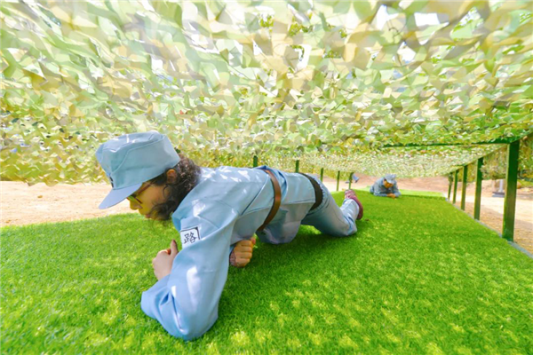 传承精神----体验八路军满缸运动、匍匐前进、独木桥、小推车等。